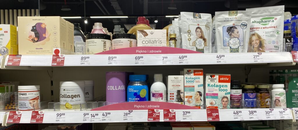 Collagen supplements selection in a Polish store (Rossmann) in December 2025