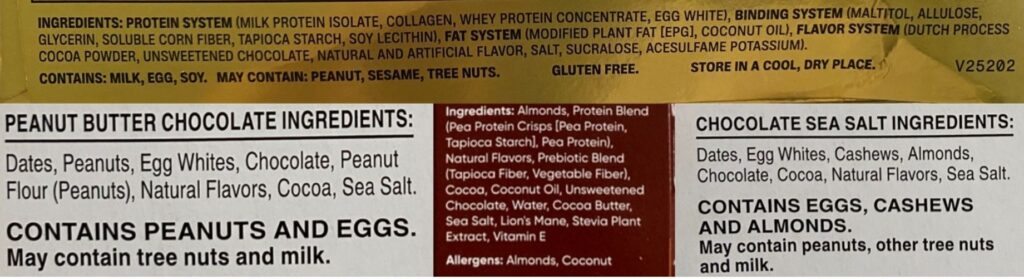 Close-up of the ingredients in protein bars from my pantry. These bars are only available in the American market. Similar products are popular in Europe, but for language reasons, I’ve only included English-labelled products here.